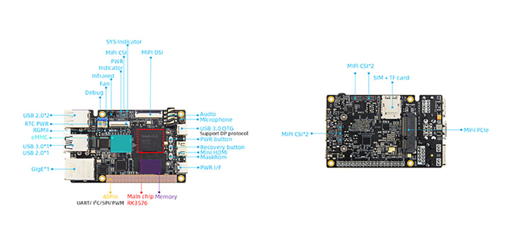 4. Pelabuhan onboard Gigabit Ethernet, rgmii, usb3.0 / 2.0, mini pct, mini HDMI, layar Mipi lan kamera mipa sing ora bisa digunakake kanggo nyukupi kabutuhan pangembangan!