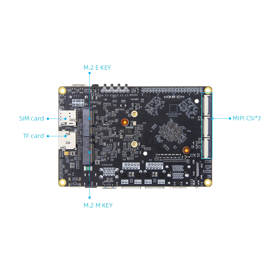 • Konfigurasi Core: 16GB LPDDR5 RAM + 128GB EMMC, port USB 2,0, loro-lorone port mini, utawa modul mini-pcTi, utawa modal antarmuka mini-pcle, utawa port ekspansi mini-pcle liyane (kompatibel Kanthi Port Raspberry Pi, Pidh, Ndhukung PWM, GPIO, PCI Express, Spi, UART, lan bisa), M.2 M-Key sing kompatibel karo SSD M.2