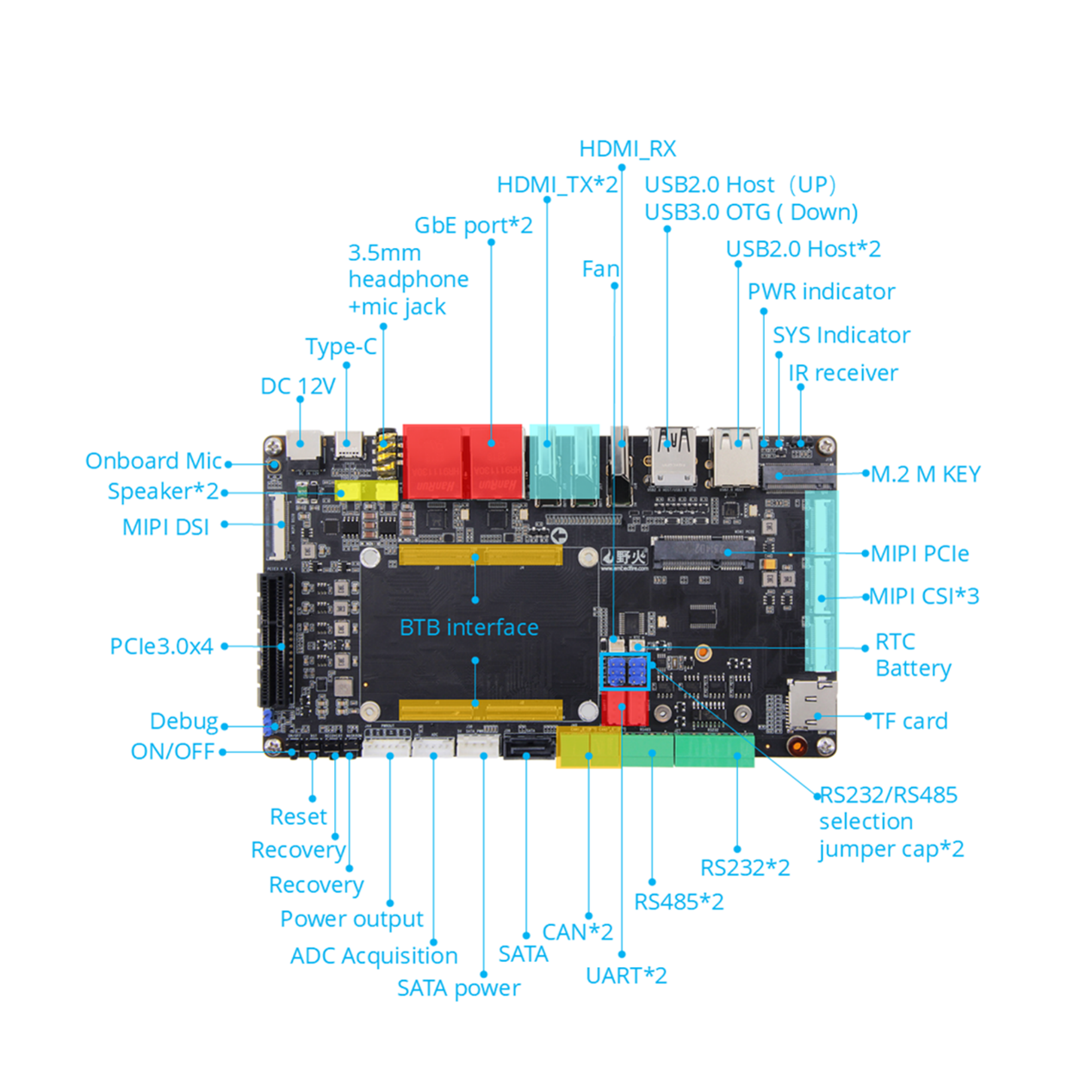 L l rk3588 BTB Motherboard: Produksi massa rangkep ruang lan piranti terbatas khusus (dibutuhake kanggo produksi volume tinggi)