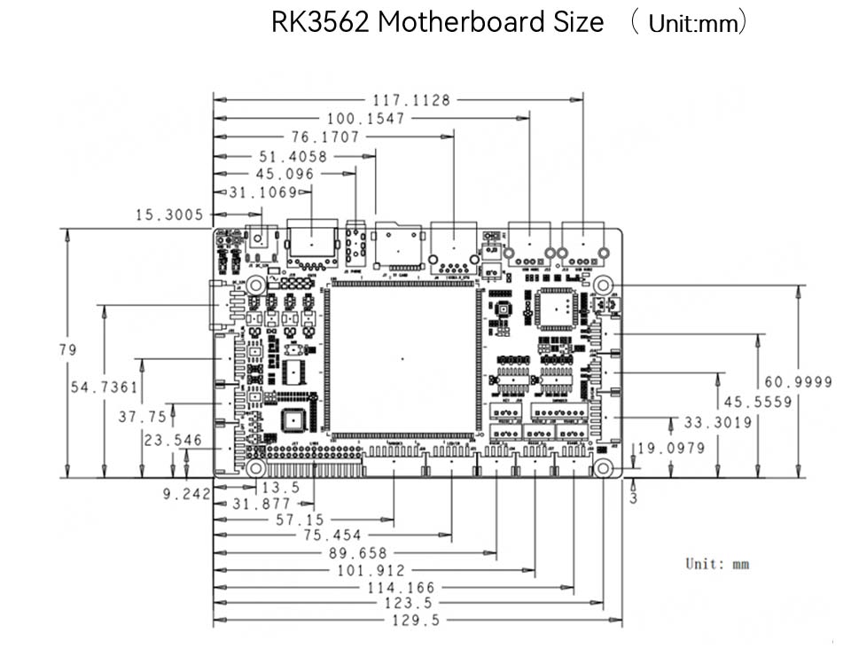 Model: RK3562 / RK3562JCPu: Quad-Core Cortex-A53, Frekuensi Utama nganti 2.0Ghzgpu: Mali-g52npu: Kelas komputasi RK3562J tanpa NPU)
